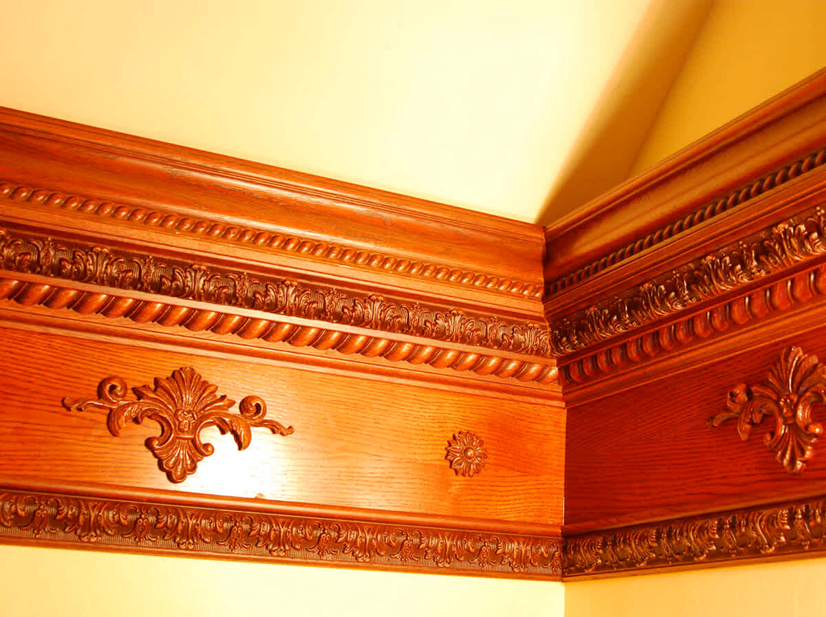 Мы производим множество накладных декоративных молдингов из дерева - плинтуса, галтели, раскладки и карнизы.